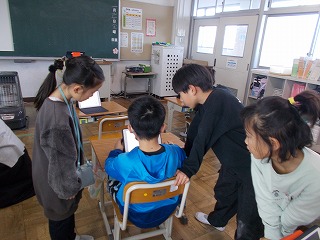 2年生のICT授業では、「つくし文集」の原稿づくりをしていました。罫線を消す方法を教えてもらって形式をそろえたり誤字脱字を直したりしました。困った時には、近くの席の子がすぐにやってきて教え合っている姿に感心しました。
