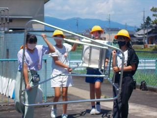 水泳指導が無事終わり、5・6年生がプールの監視台やグリーンマット、椅子やビート板などの道具を片付けtてくれました。少ない人数であるにもかかわらず、手分けをして協力して片付けてくれたので、10~15分で片付けが終わりました。5・6年生のみなさん、ありがとう!お疲れ様でした。