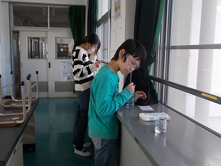 6年生の理科では、炭酸水や食塩水、アンモニア水などの水溶液をリトマス紙をつかって調べ仲間分けしました。正しい結果が出るように1回ずつガラス棒を洗うことや水溶液が手などにつかないように気をつけることなど、注意や手順を守って実験することができました。全員が一人ずつ、赤と青のリトマス紙の色の変化を確かめながら記録をして、酸性・中性・アルカリ性に分けられることを学習しました。