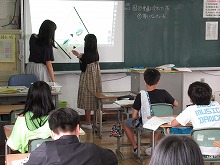 線対称の性質を利用して、線対称になるように図形をかきました。三角定規やコンパスを上手に使って作図していました。コロナウイルス感染防止のために普段よりも静かな教室になっていますが、学習に集中している6年生の姿を見ると、みんなと一緒に学ぶことのすばらしさがわかりました。