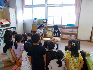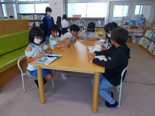 朝から雨が降っていることもあり、休み時間には、低学年図書室「ゆめのくに」にたくさんの児童が集まっていました。学年関係なく、本を読んであげる姿が見られ、ほほえましく思いました。先週は図書委員会の児童が読み聞かせをして、手作りのしおりをプレゼントしていました。今週は、読み聞かせに加えて本を借りてくれた人にしおりをプレゼントするということで、図書委員の児童は準備を進めていました。昼放課には、たくさんの児童が読み聞かせを聞きに来ていました。