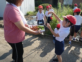 2年生の生活科では、きゅうり、ピーマン、十六ササゲ、好きな花を育てました。今朝もその収穫です。