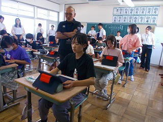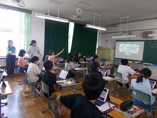 愛西市の初任者研修の模範授業をICT指導員の先生が八輪小学校で行ってくださいました。6年生の社会の授業で「古墳」についての学習です。「古墳ってなんだろう」から始まり、「墳」の漢字の意味を各自で調べたり、前方後円墳の大きさを実感するために八輪小学校と比較したりしました。そして「そんなに大きな古墳をどうやって作ったのか」という疑問を解決するために、1枚の絵から気になること・わかることをみんなで共有し、新たな発見や学びがありました。