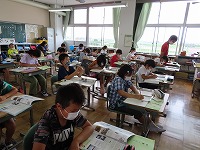 5年生は、理科で「天気の変化」のまとめをしました。休校期間中予習をし、新聞等に載っている天気図を調べ、雲の様子と天気の関係を学びました。そして、学習したことを生かし、天気の予想をします。空を見るとき、気象情報を見るとき、生活の中で理科の時間の学びを生かせると楽しいと思います。