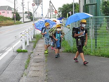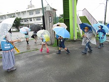 どんな天候でも、八輪っ子は元気いっぱいです。今日も、傘を差して楽しそうに登校してきました。みんなのパワーで、雨を吹き飛ばそう。