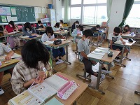 6年生の教室へ行くと、静かに算数の問題を解いています。