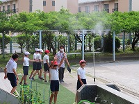 6月に入り、急に暑くなってきました。体育の時間は、今後、熱中症予防と新型コロナウイルス感染症予防の両方に気を配らなくてはなりません。マスクを外し、授業の途中で給水したり、ミストシャワーに当たったりするとともに、友達との距離を十分取り、会話を控えながら、授業を進めます。