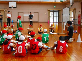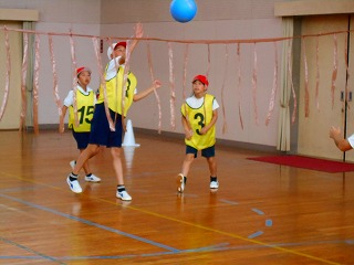 4年生の体育では、ネット型ゲームとしてソフトバレーボールをしています。バレーボールの技能の難しさを補いどの子も楽しめるように、アタックしてボールを落とすことに特化したゲーム行いました。3人チームでボールをひろい、つないで、アタックするルールなのでどの子も役割があり活躍できます。自分たちでめあてを決めて協力して練習と試合を進めていました。