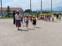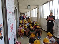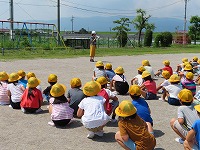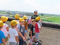 八輪っ子たちは、災害時の合言葉「お(押さない)は(走らない)し(しゃべらない)も(戻らない)」を厳守し、運動場へも3階へもとてもスムーズに移動することができました。また、1年生は訓練後、屋上避難も体験しましたが、全員、先生の指示をよく聞き、安全に避難することができて、感心しました。