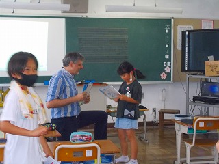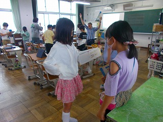 3年生の外国語では「How are you ?」「I am fine.」などの挨拶の練習をしていました。英語でじゃんけんをして、勝った方が調子を尋ね、負けた方が「元気」「眠たい」「お腹がすいている」など英語で答えていました。相手を変えてたくさんの友達とコミュニケーションをしました。身振り手振りをつけながら英語で発音する練習もしました。