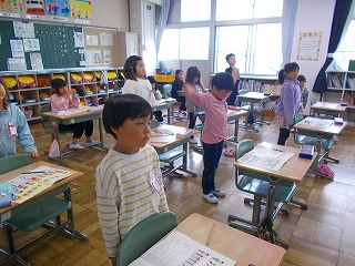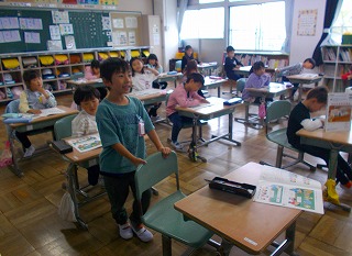 1年生の算数では「前から3番目の人立ちましょう」と「前から3人立ちましょう」の違いを学習しました。実際に前から3番目の人が立った場合と前から3人が立った場合を比べて確かめました。「後ろから、右から、左から・・・」も練習しました。動物の並んだ絵を見て考えたりブロックを操作して考えたり繰り返し学習しました。