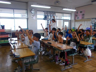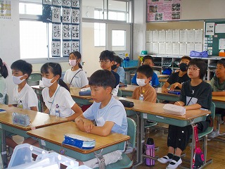 6月のハッピートークの出前授業に続いて、オンライン朝礼がありました。まずは、動作をつけた発声練習と早口言葉、次にハッピートークトレーニングをしました。「笑顔は笑顔をよぶ」「笑顔は広がり伝わっていく」という話を聞き、最後に、誰をどのように笑顔にしたいかを考えました。明るい前向きな雰囲気で朝を迎えることができました。