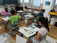 4年生は、書写コンクールと作品展に向けて、先週から「真心」という文字を練習をしています。めあては、「筆遣いに気を付けて、文字の大小、中心を整えて書こう」です。「真」は、画数が多くどうしても大きくなりがちなので、「心」とのバランスに気を付けなくてはなりません。静かな教室で、お手本を見ながら、丁寧に文字を書く姿が見られました。