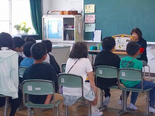 読み聞かせボランティア「まつぼっくり」の方が、読み聞かせをしてくださいました。水曜日は低学年、本日金曜日が高学年でした。4年生はグリム童話「まほうのくびかざり」の紙芝居を、5年生は「みんなとおなじくできないよ~障がいのあるおとうととボクのはなし~」、6年生は落語絵本「てんしき」を読んでいただきました。読み聞かせボランティアの方から、「静かに聞いてくれて、おもしろいところで笑ってくれるので嬉しいです。こちらも、子ども達からパワーがもらえます」と言っていただきました。