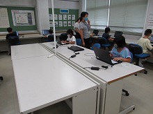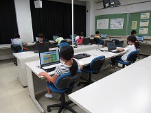 子どもたちが好きなキャラクターが登場するソフトを使って、ゲーム感覚で練習しました。キーボードをすらすら打つことができるよう、がんばりましょう。