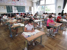 台風10号の影響で、強風・雷・大雨という荒れた天候でした。それでも、教室の中は落ち着いた雰囲気で、子どもたちは学習に集中していました。