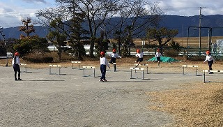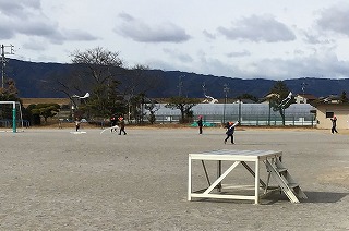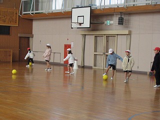 2年生はボールをける練習をしていました。昨夜の雪の影響で、冷蔵庫の中にいるような寒さの体育館の中で、がんばっていました。