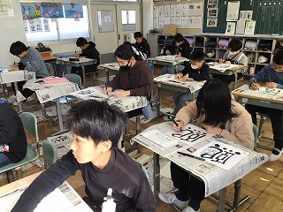 6年生は卒業の記念として「己書(おのれしょ)」を3・4時間目に行いました。