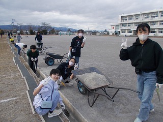 昨日、5・6時間目に6年生は運動場南側の溝掃除の奉仕作業を行いました。