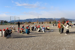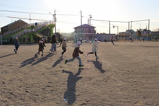 朝の時間に全校縦割り活動で「ふれあい遊び」を行いました。2つのエリアに分かれて「ふえおに」をしました。高学年と低学年には体力差があるので、高学年は追いかけるときにスキップをするルールでした。スキップしながらのおにごっこはとてもほほえましいものでした。ちょうど晴れていて日差しが暖かい中、楽しく活動できました。