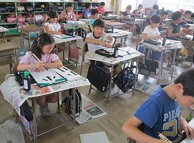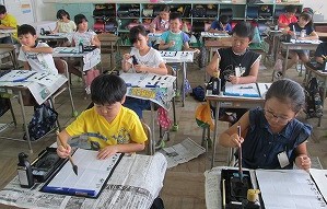 9月4日(水)に、書写コンクールに向けて練習を始めました。去年までとは違い3年生からは毛筆になります。「名前がでかすぎたー!」「紙が破れたー!」「うまくかけな~い!」と、初めての字に苦戦しながらも真剣に練習することができました。これから練習を重ね、清書までに納得のいく字が書けるようにしていきたいです。