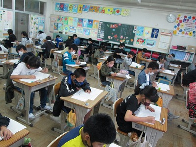 全国学力・学習状況調査を行いました。国語・算数の問題と日常生活のアンケートに取り組みました。みんな真剣に問題を解いていました。終わった後には、「思ったよりできた!」「自信ある!」と言っている子もいれば、「全然わからんかった!」と言っている子もいました。調査結果が出るのは、8月の予定です。