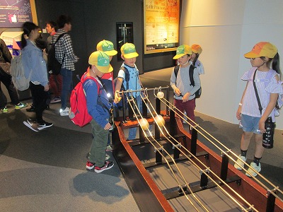 4月18日(木)に、遠足で名古屋市科学館に出かけました。様々な体験を通し、楽しみながら理科の勉強もすることができました。プラネタリウムでは、星座の話を聞いたり、宇宙の世界へ行った気分を味わったりすることができました。お弁当は、晴天の中でみんなで楽しく食べました。帰りのバスは、疲れて寝てしまうと思ったら、ビデオを見て大爆笑!学校に着いてからも時間があったので、元気いっぱい遊んでいました。