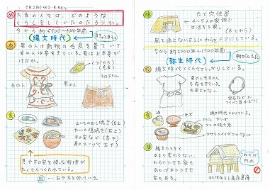 子どもたちが楽しみ(!?)にしていた歴史の学習が始まりました。縄文時代と弥生時代についての学習をしました。三内丸山遺跡の動画や教科書の資料からその時代の人がどんなくらしをしていたのか考え、みんなで意見を交流しました。その当時の土偶や土器、食べられていたものなどのレプリカも見ました。