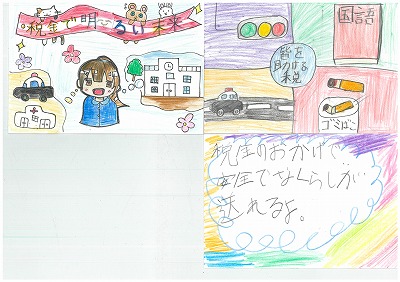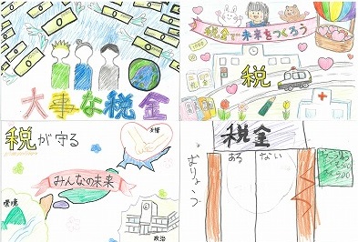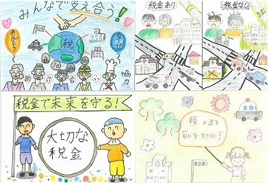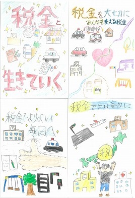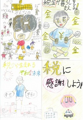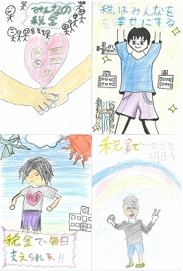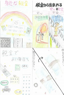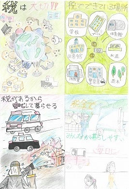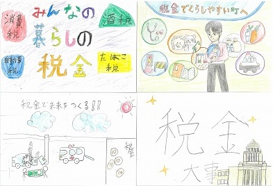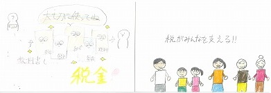 租税教室のあとに、税に関する感じたことを絵はがきにしてまとめました。みんなの作品を紹介します。