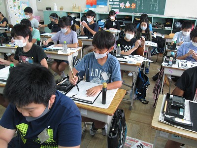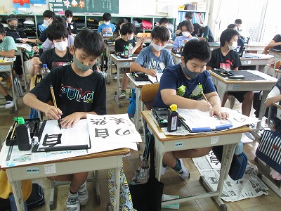 書写の時間には、書写コンクールに向けて「自然の美」を練習しました。とても集中し、肘の角度などにも気を付けながら真剣な表情で書いていました。