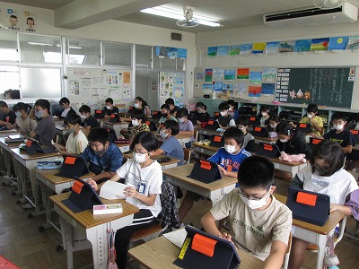 今日はICT支援の先生に教えてもらいながら、「グーグルミート」を使ったオンライン学習の練習をしました。普段タブレットを使いこなしている子どもたちも、英語や数字の混じったログインIDやパスワードを打つだけで一苦労。ようやく画面に自分の顔が映ると「イエーイ!」と手を振っていました。次回からはもっと楽に使用できると思います。