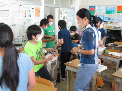 最初は夏休みにどこに行ったのかの言い方をすごろくを使って、楽しみながら練習をしました。