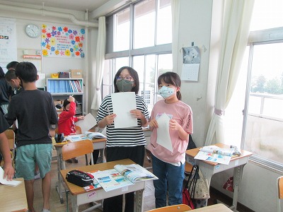 外国語の時間には、夏休みの出来事について英語で発表できるように練習をしています。