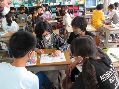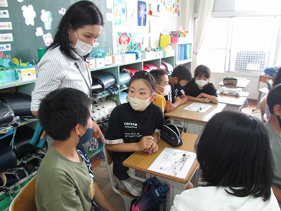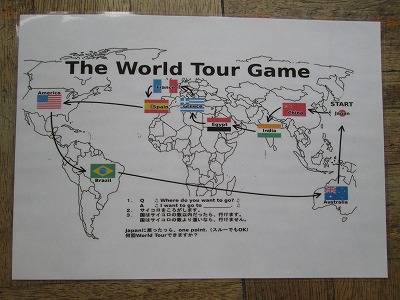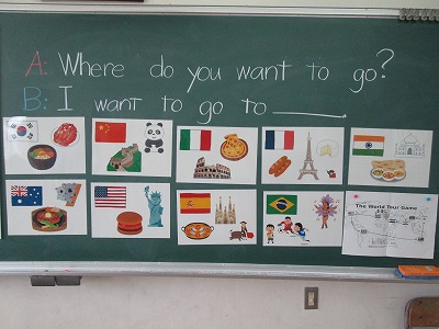 外国語の時間には、様々な国について学習していきます。最初に、すごろくを使ってどこの国に行きたいか、その言い方を聞いたり答えたりする練習をしました。これから、おすすめの国・そこで見られるもの食べ物などについて英語で紹介できるようにしていきます。