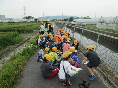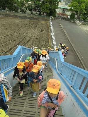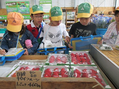 5月9日(木)に、社会科の学習で「学校の東側には何があるのか」調べるために、校外学習に出かけました。白地図を手に、「麦畑がたくさんある。」「ここ行ったことあるよ。」「あれは何?」と見つけたものを書き込みながら、楽しく学習を進めていきました。途中、『道楽の郷』を見学し、どんなものがあるのか、どこで作られているのかなどを調べながら見て回りました。次は、学校の西側にも行く予定です。