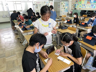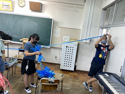 終わった後の振り返りでは、「どんなお客さんにもしっかり対応ができた」「みんなが楽しくやっているのを見て、作ってよかったと思った」「最初は、1・3年生と一緒に回りたくないなと思っていたけど、一緒に回るうちに仲良くなれてよかった」「思ったよりもスムーズにいかなくてパニックになったけど、みんなが楽しそうでよかった」など、満足のいく活動ができたようです。写真は準備の様子です。