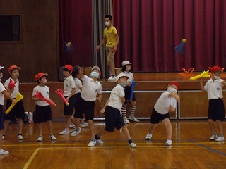 そこで奇数学年(火曜日)と偶数学年(木曜日)に分かれて体育館で3種目を行うように変更しました。