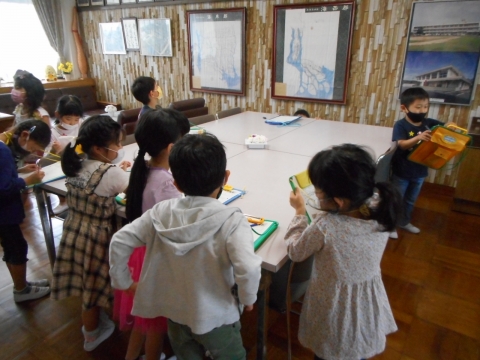 1年生が校長室と職員室の学校探検をしました。