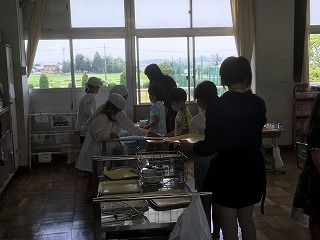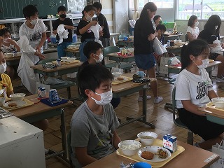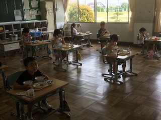 ひとりずつ前を向いておしゃべりもせずに食べています。