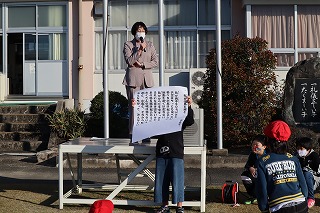 今日の朝礼ではまず税に関する習字の表彰を行いました。