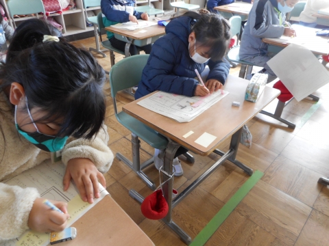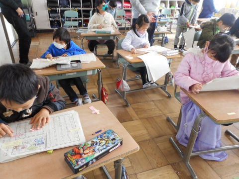 お話の「はじめ・中・おわり」の「はじめ・中」まで書き終わったお話を読み合い、
