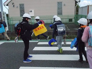 新しい団長が下級生をリードしながらの登下校を行っています。