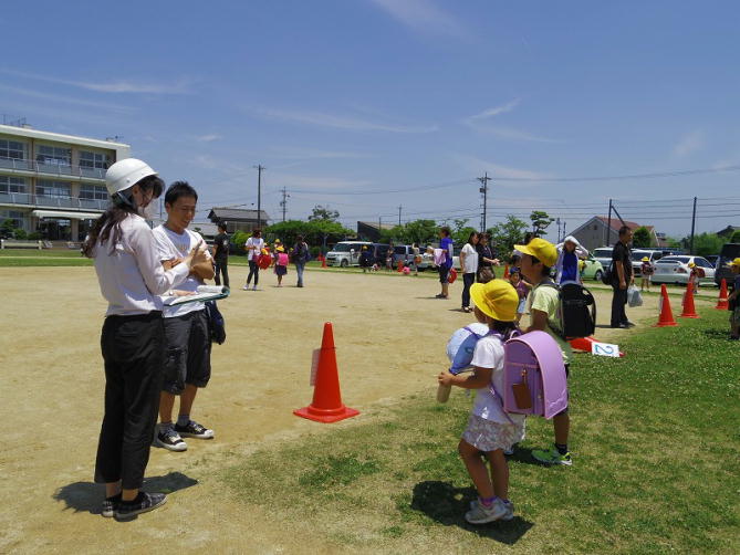 校舎を背に整列したのは、子どもたちを動揺させないためです。