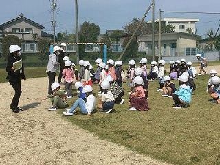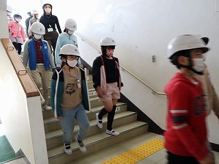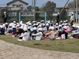 どの学年の子もヘルメットをかぶり速やかに避難できました。
