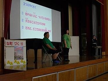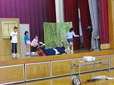 大切な命を守るため舞台の寸劇も真剣に見ていました。