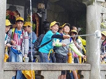 いつもは混雑する音羽の滝もすいていて、柄杓でお水をすくうことができました。
