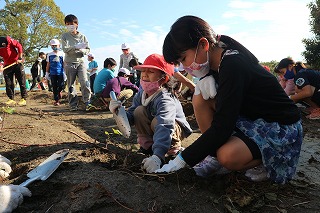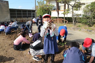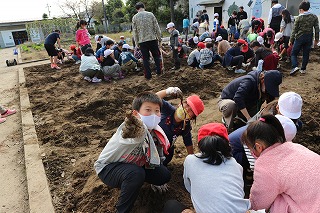 1年生と6年生、2年生と5年生が協力して掘っていました。