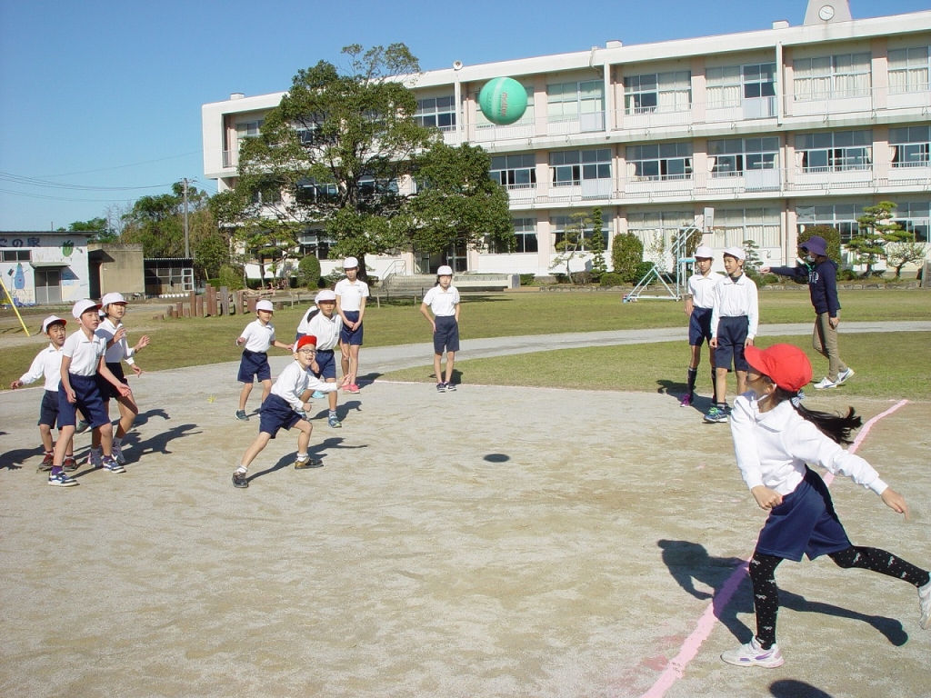 後半は「ドッジボール」高学年jは、利き手を使いません。