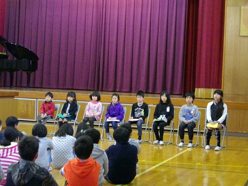2学期がんばったこと、3学期も続けたいこと、校長先生のお話。