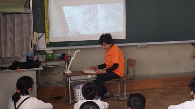 今週から、読み聞かせボランティア「まつぼっくり」の皆さんによる読み聞かせが再開しました。今週は、6年生でした。儒学者である荻生徂徠の話から作られた講談絵本「徂徠どうふ」宝井琴調作と、ヨーロッパで戦争が起きていた最中を描いた「戦火をくぐったテディベア」トミ―・ウンゲラー作で、どちらも6年生らしい選書でした。どの子も真剣な表情で聞き入っていて、ボランティアの方が感心されていました。